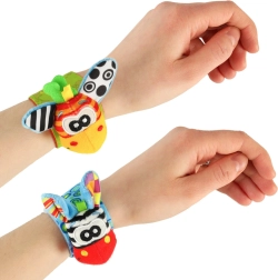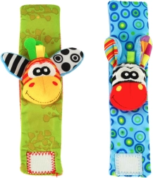 Set sadrži 2 komada – u plavoj i zelenoj varijanti – za raznoliku igru kod kuće i na putu. Proizvod je od sigurnog poliestera i posjeduje CE certifikaciju. Idealan za rano razdoblje kada dijete otkriva svoje ručice i uči ih namjenski koristiti.