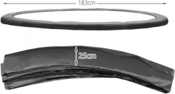 Zaštitni rub je univerzalan i pristaje na većinu trampolina promjera 180–183 cm. Ugradnju možete obaviti u trenu bez alata – praktične gumice osiguravaju čvrsto pričvršćivanje. Za ispravan odabir dovoljno je izmjeriti vanjski promjer vašeg trampolina.