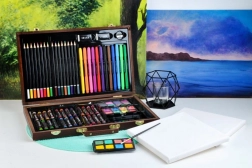Sav pribor za crtanje i slikanje uredno je posložen u sklopivom drvenom kovčegu s pretincima, pa uvijek imate brz i jednostavan pristup svemu što trebate.