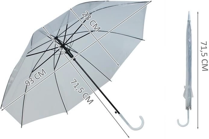 Prozirni pokrov od PVC-a omogućuje sigurno praćenje puta i pri jačoj kiši, kada je potrebno držati kišobran pod kutom. Kišobran je ujedno stilski dodatak elegantnim odjevnim kombinacijama, uključujući vjenčanice i svečane haljine.