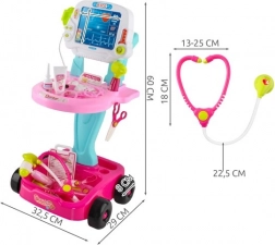Ovaj liječnički set donosi djeci sve što im treba za zabavnu i poučnu igru doktora. Kolica s dvjema razinama na 4 kotača omogućuju da su svi instrumenti pri ruci i da se lako prevoze između prostorija. Tu je i interaktivni monitor s EKG-om koji proizvodi zvukove i pali šarene LED diode – mali liječnici tako doživljavaju realistične trenutke ordinacije.
