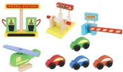 4 autića, helikopter, autopraonica, benzinska postaja, blagajna, dizalo, dijelovi cesta, montažni set