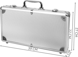 Organizirajte vlastitu poker večer s kompletnim setom koji nudi sve potrebno za Texas Hold'em i druge kartaške igre. Žetoni s metalnom jezgrom (10 g) donose autentičan kasino dojam – imaju ugodnu težinu, lako se slažu i vrlo su izdržljivi. Sve je pohranjeno u čvrstom aluminijskom koferu s pjenastom oblogom i precizno oblikovanim pretincima, tako da sadržaj ostaje na mjestu i tijekom putovanja.