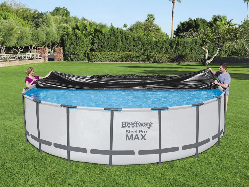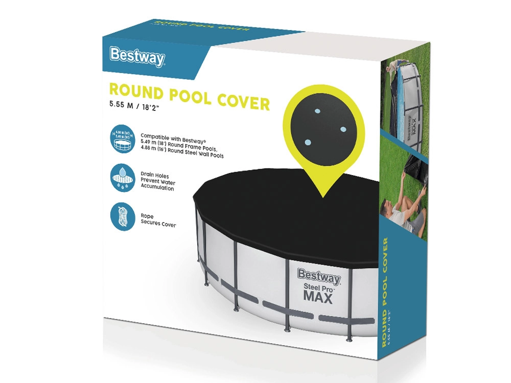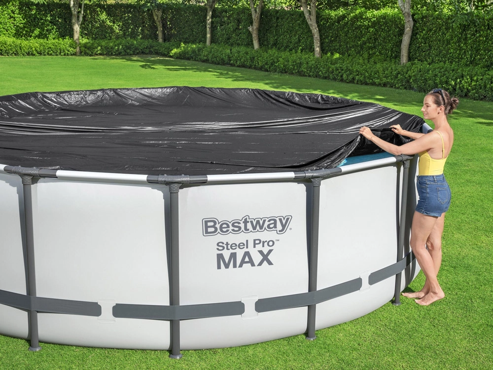 Zaštitna cerada za bazene Bestway štiti vaš bazen od nečistoća kao što su insekti, lišće i lagana kiša. Pruža dodatni izolacijski sloj za održavanje temperature vode i osigurava sigurnost protiv slučajnog pada u bazen.