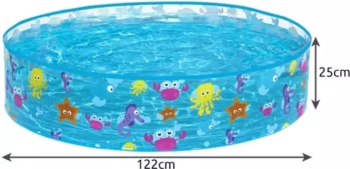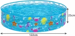 Specifikacije bazena uključuju kapacitet od 277 litra i dimenzije 122 cm x 25 cm, što je idealno za malu djecu. Proizvod teži samo 950 g, stoga je lako prenosiv i manipulativan. Sadrži i vodootpornu zakrpu za popravak koja omogućuje brze popravke, čak i kada je bazen napunjen vodom.