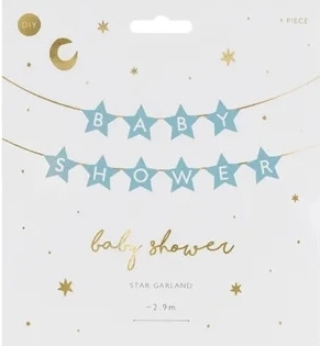 Dodajte svojoj proslavi bebe nježan dodir dekorativnim transparentom u obliku zvjezdica. Natpis „Baby Shower“ u pastelnoplavoj boji izvrstan je izbor za usklađenu tematsku dekoraciju. Transparent je lagan, papirnati i pripremljen za brzo vješanje.