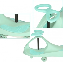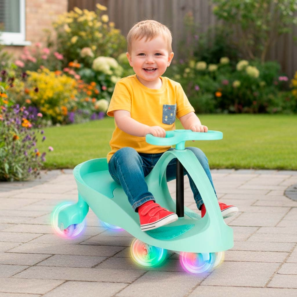 Stilsko gravitacijsko guralo s LED svjetlećim kotačićima oduševit će i djecu i roditelje. Zahvaljujući upravljanju pokretom volana pokreće se bez odgurivanja nogama, ima ergonomsko sjedalo, široko razmaknute stražnje kotačiće za stabilnost i tihe gumene kotače koji neće izgrepsti pod. Čvrsta konstrukcija nosi do 80 kg i pogodna je za dom i van.