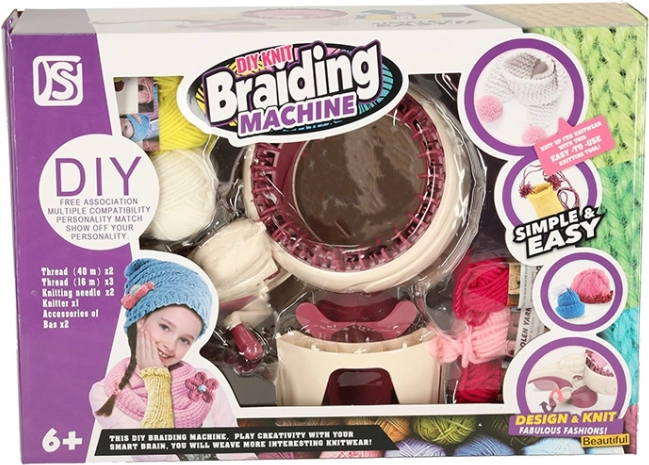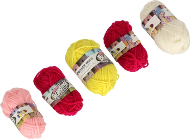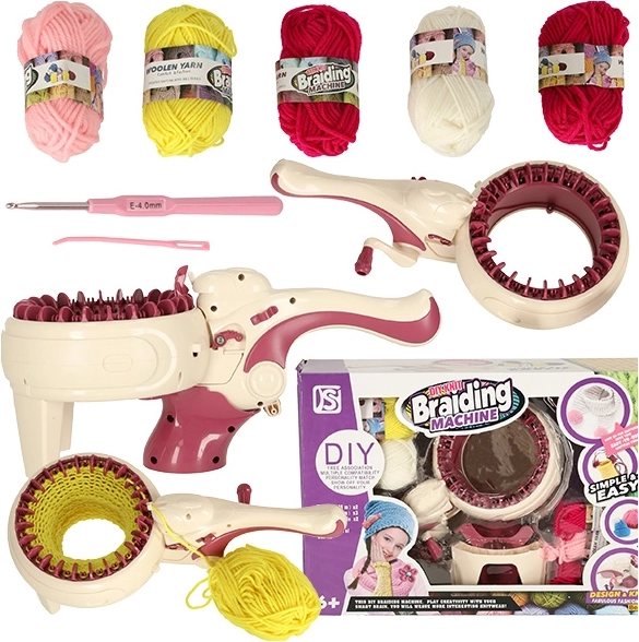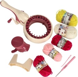 Set sadrži pletački stroj, pređu u 5 boja, kukicu i plastičnu iglu – sve što vam treba za stvaranje.