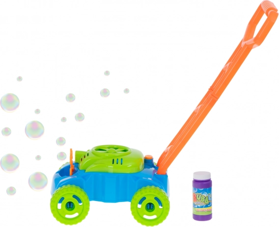 Zamislite svoje dijete kako gura ovu čarobnu kosilicu po vrtu za sunčanog dana. Kosilica ispušta čarobne mjehuriće koji razvedruju svaki trenutak. Opremljena je s 8 prstenova koji se pri kretanju uranjaju u otopinu, dok mali ventilator stvara blagi povjetarac, čime nastaju šareni sapunski mjehurići.