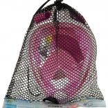 Ugrađeni šnorkel sa suhoim „dry-top“ sustavom ograničava prodor vode odozgo. Maska se lako prilagođava obliku lica zahvaljujući mekom silikonskom brtvljenju i podesivim trakama. U pakiranju se nalaze čepići za uši i nosač za akcijsku kameru (npr. GO PRO), kako biste mogli snimiti svoje najbolje trenutke ispod površine. Praktična mrežasta vrećica olakšava prenošenje i pohranu.