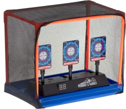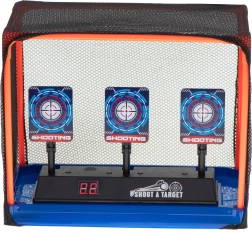 Elektronička meta za gađanje izvrsna je igračka za djecu i odrasle koji žele trenirati preciznost i koordinaciju ruka-oko. Nakon pogotka ciljevi se spuštaju, nakon obaranja sva tri automatski se podižu, a na LED zaslonu se pribraja bod. Prikladno za pjenaste strelice i kuglice.