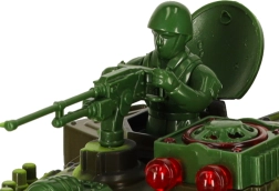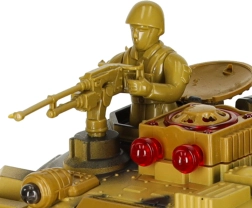 Gusjenično podvozje s mekim gumenim gusjenicama osigurava dobru trakciju, rotirajuća kupola okreće se do 300°, a infracrveni top omogućuje sigurnu paljbu na kratkoj udaljenosti. Efektno LED osvjetljenje i bogati zvučni efekti motora, topa i mitraljeza pojačavaju atmosferu pravog bojišta. Kvalitetna plastika i pažljiva izrada izdržat će mjesece zabave.