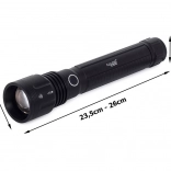 Zahvaljujući funkciji zumiranja moguće je glatko mijenjati žarišnu duljinu svjetla i domet do 1000 metara. Za napajanje se koriste visokokvalitetne litij-ionske baterije 26650, koje produžuju vrijeme rada. Svjetiljka nudi više načina rada: 100%, 75%, 50%, stroboskop i SOS.