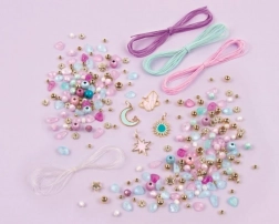Izradite čarobne narukvice inspirirane nebom i zvijezdama. Set Make It Real Celestial Stones uključuje bogat izbor perlica, biserčića i privjesaka, zahvaljujući kojima djeca lako stvaraju narukvice prema vlastitoj mašti. Idealan za zajedničko stvaranje s prijateljima ili kao kreativni poklon.