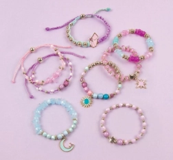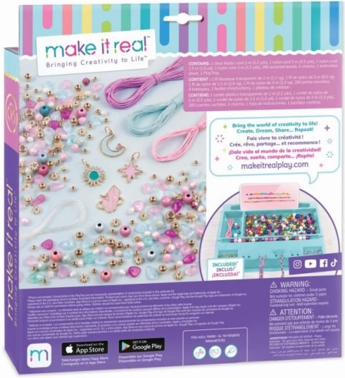Otkrijte kreativni set Make It Real Celestial Stones za izradu do osam jedinstvenih narukvica. U pakiranju je sve potrebno – od perlica i biserčića do privjesaka i uzica. Savršen izbor za razvoj dječje mašte, fine motorike i samoisražavanja. Set je siguran, testiran prema najvišim standardima i donosi puno zabave tijekom stvaranja.