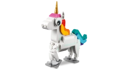 Uz ovaj čarobni set djeca mogu izgraditi ljupkog jednoroga sa zlatnim rogom, duginim repom i pokretnim nogama i kopitima. Model se može izložiti na duginom postolju i postaviti u tradicionalnu pozu na stražnjim nogama ili ga ostaviti da stoji na sve četiri.