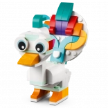Zahvaljujući konceptu 3 u 1 mali graditelji model mogu lako preraditi: u elegantnog morskog konjića s postoljem koje podsjeća na morsko dno ili u pauna s raznobojnim repom i pokretnim očima. Set nudi beskrajne kreativne priče i potiče slobodnu gradnju drugih simpatičnih stvorenja.
