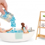 Dio seta je samostojeća kada s odlagalnim pladnjem, polica u izgledu drva i mnogo dodataka: velika i mala četka, bočica balzama, sapun, svijeća, biljka, dekorativni natpis i slatki psić. Polica i pladanj imaju praktične držače kako bi pribor ostao na mjestu tijekom igre.