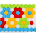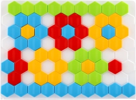 Ovaj privlačan mozaik donosi djeci beskonačne mogućnosti pri stvaranju različitih slika i motiva. Šarenih šesterokuta se slažu na podlogu sličnu pčelinjem saću, što potiče njihovo kreativno razmišljanje. Ne samo da je ova igračka izvrsna za zabavu, već također pomaže u razvoju fine motorike i prostornog shvaćanja.