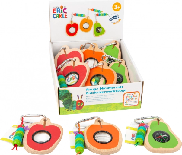 Ovaj svestrani istraživački dodatak u razigranom dizajnu gusjenice potiče dječju znatiželju i učenje kroz igru. Djeca s njim mogu promatrati prirodu pomoću lupe te istovremeno učiti osnove navigacije zahvaljujući integriranom kompasu. Lagana i izdržljiva izrada od drva, metala i plastike osigurava sigurno korištenje i na terenu.