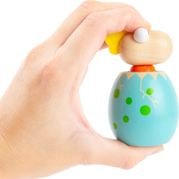 Dizajn veselog stvorenja koje proviruje iz šarenog jajeta poziva na maštovitu igru i podupire prirodan razvoj osjetila. Kompaktne dimenzije odlično pristaju u malu ručicu i olakšavaju hvatanje i prve manipulacije.