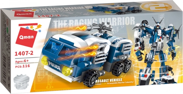Otkrijte akcijsku zabavu s građevnim setom Qman Raging Warrior – borbenim vozilom sa 116 dijelova koje se može kombinirati s drugim setovima. Sastavite detaljan model policijske tehnike i spajanjem modela iz serije stvorite velikog robotskog čuvara reda. Kocke od izdržljive i neškodljive ABS plastike u potpunosti su kompatibilne s LEGO, Sluban, Cobi i drugim markama.