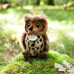Plišana sova ima realističan izgled i teksturu koje podsjećaju na pravo sovino perje.