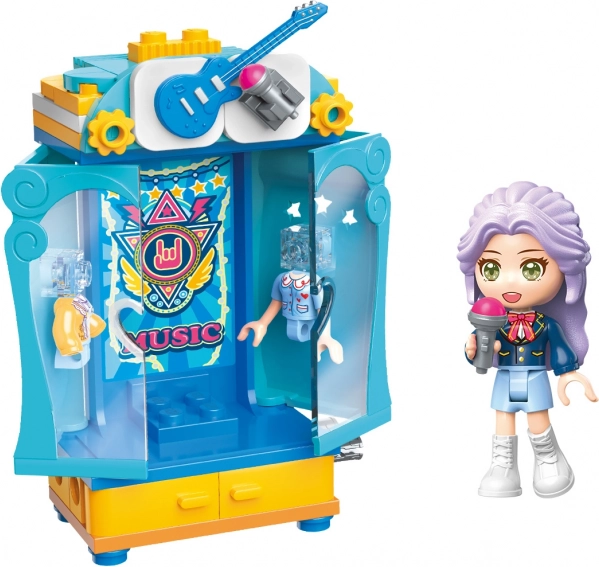 Otkrijte kreativni svijet glazbe sa setom za slaganje Qman UNA pjevačičina garderobna ormarića. Šarena mini scena s mikrofonom, gitarom i izmjenjivim dodacima poziva na glazbeni nastup i zabavne priče. Set sadrži minifiguricu pjevačice, izrađen je od sigurne ABS plastike i kompatibilan je s Legom i drugim markama.