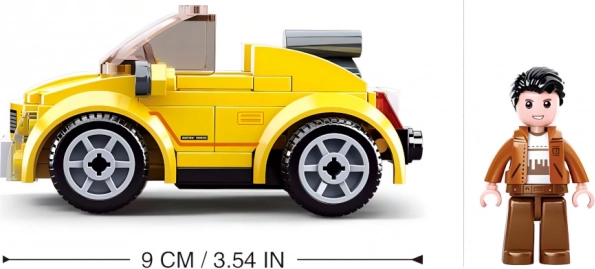 Žuti kabriolet iz serije Sluban Town donosi brzu vožnju, oštro kočenje i mnogo zabave pri sastavljanju i igri. Set uključuje vozača u kožnoj jakni i funkcionalni dodatak u obliku semafora, pa djeca lako stvaraju vlastite gradske prizore. Sve je izrađeno od izdržljive i sigurne ABS plastike koja podnosi svakodnevnu igru.