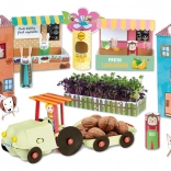 Eco seoče tvrtke Lena nudi vam mogućnost recikliranja umjesto bacanja. Uz ovu kreativnu kutiju pretvorit ćete staru ambalažu u malo selo s tržnicom, vrtićem i kućama.