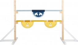 Ovaj set je idealan za igru na “konja” (hobby horsing) ili za pseću agilnost. Djeca mogu podesiti visinu prepreke prema svojim vještinama i iskušavati skokove preko letvica, koje su upotpunjene estetskim zastavicama. Zahvaljujući masivnom drvu i stabilnim postoljima, konstrukcija je vrlo izdržljiva i sigurna za male sportaše.