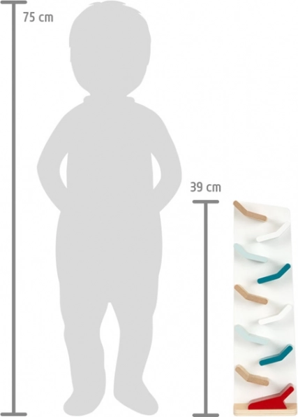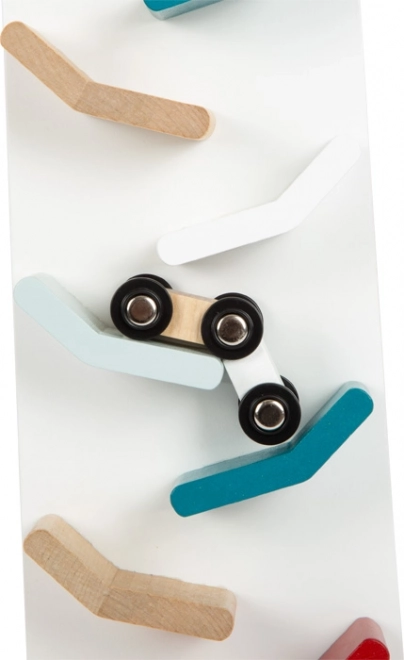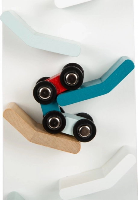 Drvena kaskadna staza je idealna igračka za razvoj dječje kreativnosti i motorike. Kada pustite šarene autiće s vrha, počinju se s klapanjem kotrljati niz stazu, što osigurava puno zabave i uzbuđenja. Moderna kombinacija boja s bijelom i prirodnim drvetom također čini ovaj set estetski privlačnom dekoracijom za svaku dječju sobu.