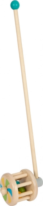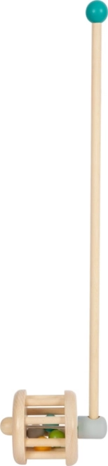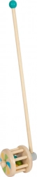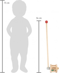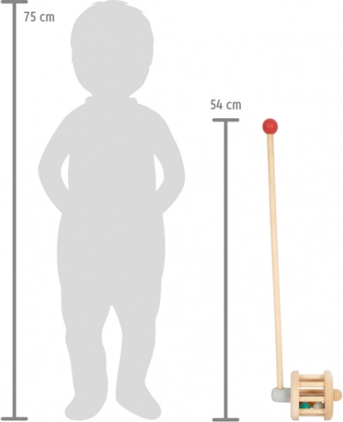 Ova drvena guralica ujedno služi kao zvečkica te je siguran i izdržljiv pratitelj za svako dijete. Šarene kuglice pri guranju veselo poskakuju oko drvenog bubnja i stvaraju zabavan zvuk.
