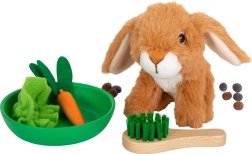 Dio seta su plišani zec i praktični dodaci: metlica, zdjelica, drvena mrkva, komadić salate i filcane “kakice” za autentične prizore brige. Set je idealna alternativa za djecu koja zasad ne mogu imati pravog ljubimca te im pomaže razvijati socijalne i emocionalne vještine.