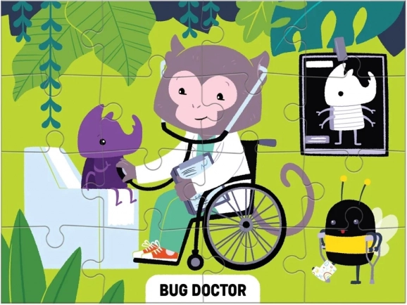 Otkrijte četiri zabavne slagalice u jednom pakiranju! Set Mudpuppy Level Up! donosi puzzle s različitim razinama težine (16, 20, 24 i 28 dijelova), koje djeci predstavljaju kreativna i duhovita zanimanja – od električara krijesnica do doktora kukaca. Puzzle su izrađene od recikliranih materijala, imaju mat površinu za vjerne boje i pakirane su u čvrstu kutiju idealnu za višekratnu uporabu i kao originalan dar.