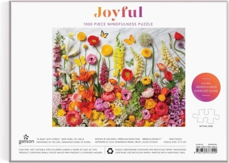 Otkrijte radost slaganja s puzzleom Galison Radost od 1000 dijelova, koji donosi živopisnu kolažu cvijeća i leptira Julie Seabrook Ream. Zahvaljujući mindfulness pristupu, puzzle donose mir, fokus i zadovoljstvo dovršavanjem detaljne slike.