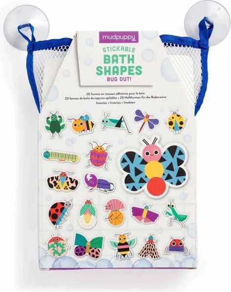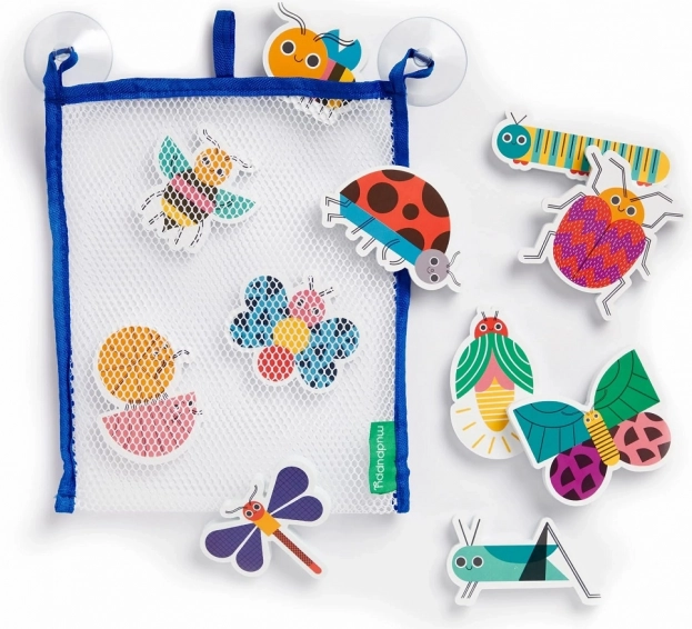 Učinite kupanje zabavnijim uz pjenaste oblike s motivom kukaca MUDPUPPY. Set sadrži 20 šarenih komada koji nakon namakanja lako prianjaju na kadu i pločice. Igračka potiče finu motoriku, kreativnost i zadržava pažnju djece tijekom kupke. Izrađeno od materijala s udjelom reciklata i tiskano netoksičnim tintama za sigurnu igru. U kompletu je praktična mrežasta torbica s vakuumskim kukicama za lako sušenje i pohranu. Jednostavno lijepljenje, slatki motiv kukaca i sigurni materijali jamče zabavu svaki dan.