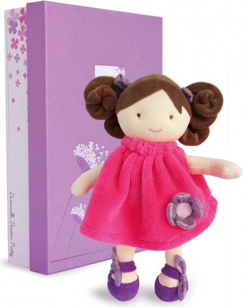 Sa svojom visinom od 28 cm, ova je lutka idealna za malu djecu od rođenja. Izrađena je od kvalitetnih materijala koji osiguravaju sigurnost i udobnost. Dijete je može posjesti i igrati se njezinim tamnosmeđim kovrčavim uvojcima, dizajniranima za stiliziranje.
