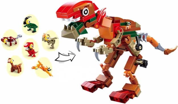 Otkrijte koji se dinosaur skriva u jajetu! Svako jaje sadrži mini građevni set od kvalitetne ABS plastike s uputama za sastavljanje. Motiv šaljemo nasumično. Nakon što prikupite cijelu seriju, možete sastaviti veliki model tiranosaura rexa ili triceratopsa. Set je kompatibilan s LEGO, COBI i Mega Bloks te je prikladan od 4 godine.