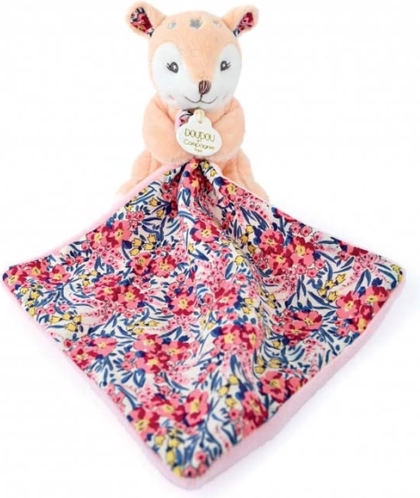 Mekan poklon set Doudou spaja plišanu srnu i nježnu dekicu za bebe od rođenja. Izrađeno od premium, ultra mekog materijala s umirujućim pamučnim printom. Sjajan poklon za rođenje bebe i za Božić, u elegantnoj poklon-kutiji. Ispunjava CE standarde i lako se održava (pranje na 30 °C).