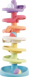 Zabavna staza za kuglice QUERCETTI Spiral Tower Play ECO+ za najmlađe razvija finu motoriku, koordinaciju oko–ruka i razumijevanje uzroka i posljedice. Šest spiralnih razina s velikom stabilnom bazom osigurava sigurnu igru, dok kuglice – jedna i s zvečkom – jure niz raznobojne staze. Izrađeno od 100% reciklirane plastike u liniji PLAY ECO+ i u pastelnim bojama ugodnima na dodir. Prikladno od 12 mjeseci.