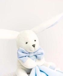 Preslatki zečić s tješilicom u plavoj boji u elegantnoj poklon kutiji razveselit će svaku bebu već od rođenja. Igračka je od iznimno mekane plišane tkanine, vrhunske izrade i udovoljava europskim CE normama. Zahvaljujući maloj dekici–tješilici dijete je lako hvata i postaje njegov omiljeni prijatelj. Sjajan prijedlog za poklon povodom rođenja bebe.