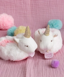 Doudou poklon set sadrži plišane patice s motivom jednoroga u prekrasnom poklon pakiranju. Ove patice izrađene su u kombinaciji bijele, ružičaste i zlatnih elemenata, koji vašem djetetu daju stajliš izgled. Glavne značajke: