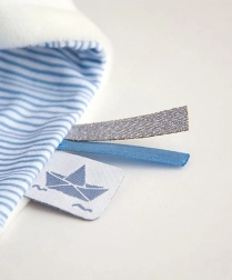 Otkrijte čaroliju Zeke Mornara, koji dolazi u prekrasnoj poklon kutiji koja odiše modernošću i luksuzom. Ovaj preslatki zeko odjeven je u plavo-bijelu prugastu majicu i krasi ga mala krunica. U ruci drži dekicu koja služi kao mazilica, lako uhvatljiva za male ručice vaše bebe.