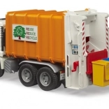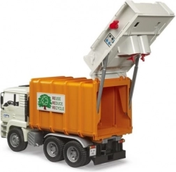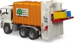 Realističan kamion za smeće BRUDER MAN TGA u mjerilu 1:16 oduševit će male i velike ljubitelje tehnike. Ima naginjajuću kabinu, funkcionalnu prešu s dvama pužnim transporterima, otvarajuća stražnja vrata sa zaključavanjem i dvije priložene kante za otpad. Proizveden od izdržljive ABS plastike u Njemačkoj, kompatibilan s figuricama Bworld i idealan za djecu od 3 godine naviše.