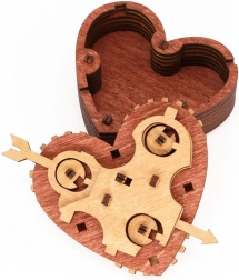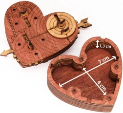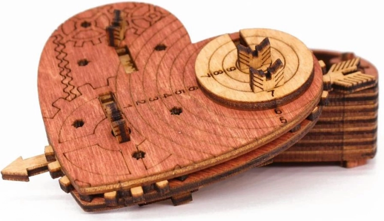 Ovo moderno srce sa zupčanicima i gravurom skriva pametan kodni mehanizam. Nakon postavljanja ispravne tri riječi dovoljno je povući za strelicu i poklopac se otvara. Srce možete koristiti kao sigurno pakiranje za sitnicu, osobnu poruku ili kao dizajnersku zagonetku za izlaganje.