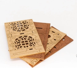 Kutijica je izrađena od kvalitetnog prirodnog drva s detaljnim laserskim izrezima te djeluje rustikalno i elegantno. Odlična je kao netradicionalno darovno pakiranje, novogodišnja dekoracija ili mali poklon za ljubitelje zagonetki i escape igara.
