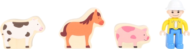 Ova drvena farma SMALL FOOT idealan je igraći set za djecu od 3 godine naviše. Nudi realistične elemente igre – štalu s dvostrukim vratima, funkcionalnu dizalicu za skladištenje sijena na katu i magnetske bale koje se lako podižu i prevoze priloženim traktorom s prikolicom. U kompletu su također konj, krava, prasac i šest dijelova ogradice.