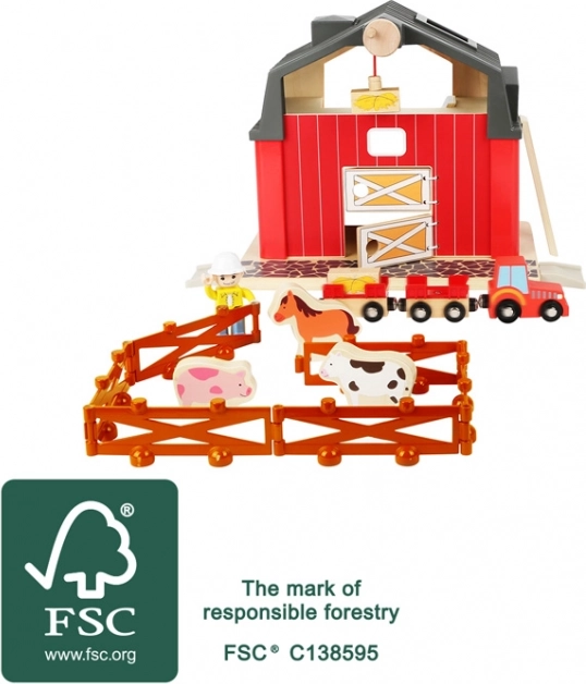 Otkrijte čaroliju sela s ovom kvalitetnom farmom od 100% FSC drva i plastike. Set sadrži štalu s funkcionalnom dizalicom, traktor s prikolicom i magnetske bale sijena. Djeca će uživati u bogatoj maštovitoj igri, razvijati finu motoriku, koordinaciju i komunikacijske vještine. Tu su i životinje, ogradica i vrata na otvaranje – na ovoj farmi uvijek je živo!