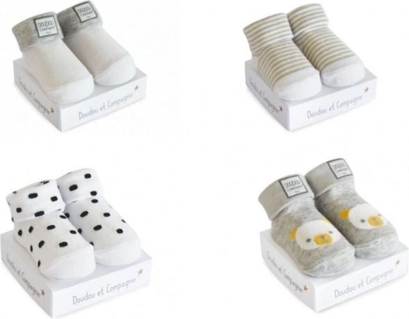 Stilne i udobne bebine čarapice DOUDOU u poklon-pakiranju za bebe 0–6 mjeseci. Idealne kao originalan poklon za rođenje, u univerzalnim bojama koje se lako kombiniraju. Čarapice su mekane, izdržljive i ugodne na dodir. Cijena je za 1 par.